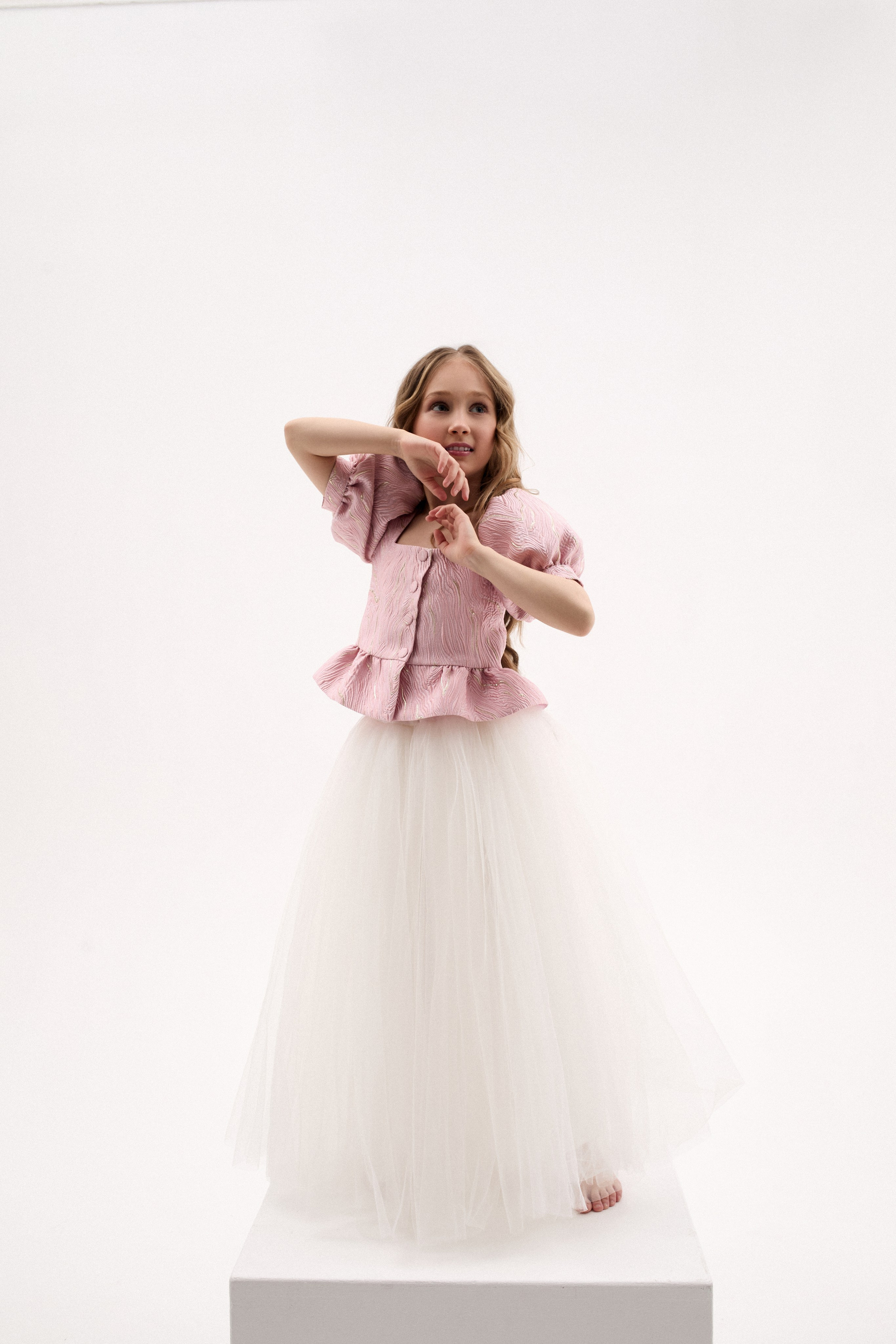 Юбка в пол ‘Jolie Tulle’ в белом оттенке — воплощение чистоты, света и утончённого стиля. Многослойный фатин создаёт безупречный объём, играя отражениями при каждом движении. Белый цвет придаёт образу торжественность и лёгкое сияние, будто сотканное из воздуха. Современная классика — для праздников, фотосессий и тех моментов, когда хочется быть по-настоящему особенной.